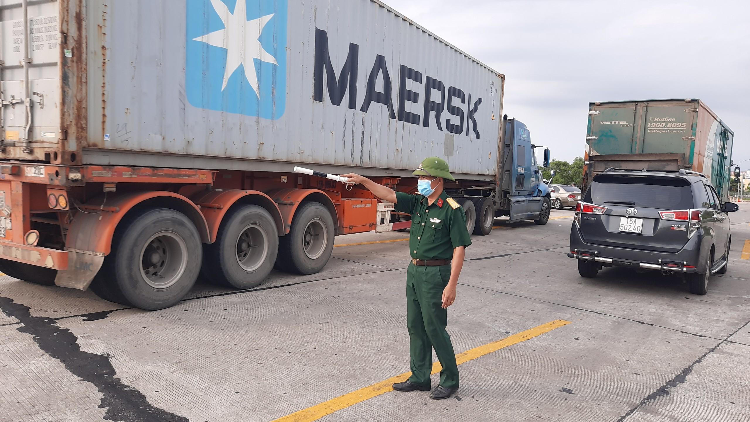 Lực lượng chức năng điều tiết các phương tiện ra vào tại các Chốt cửa ngõ TP Hải Phòng. |