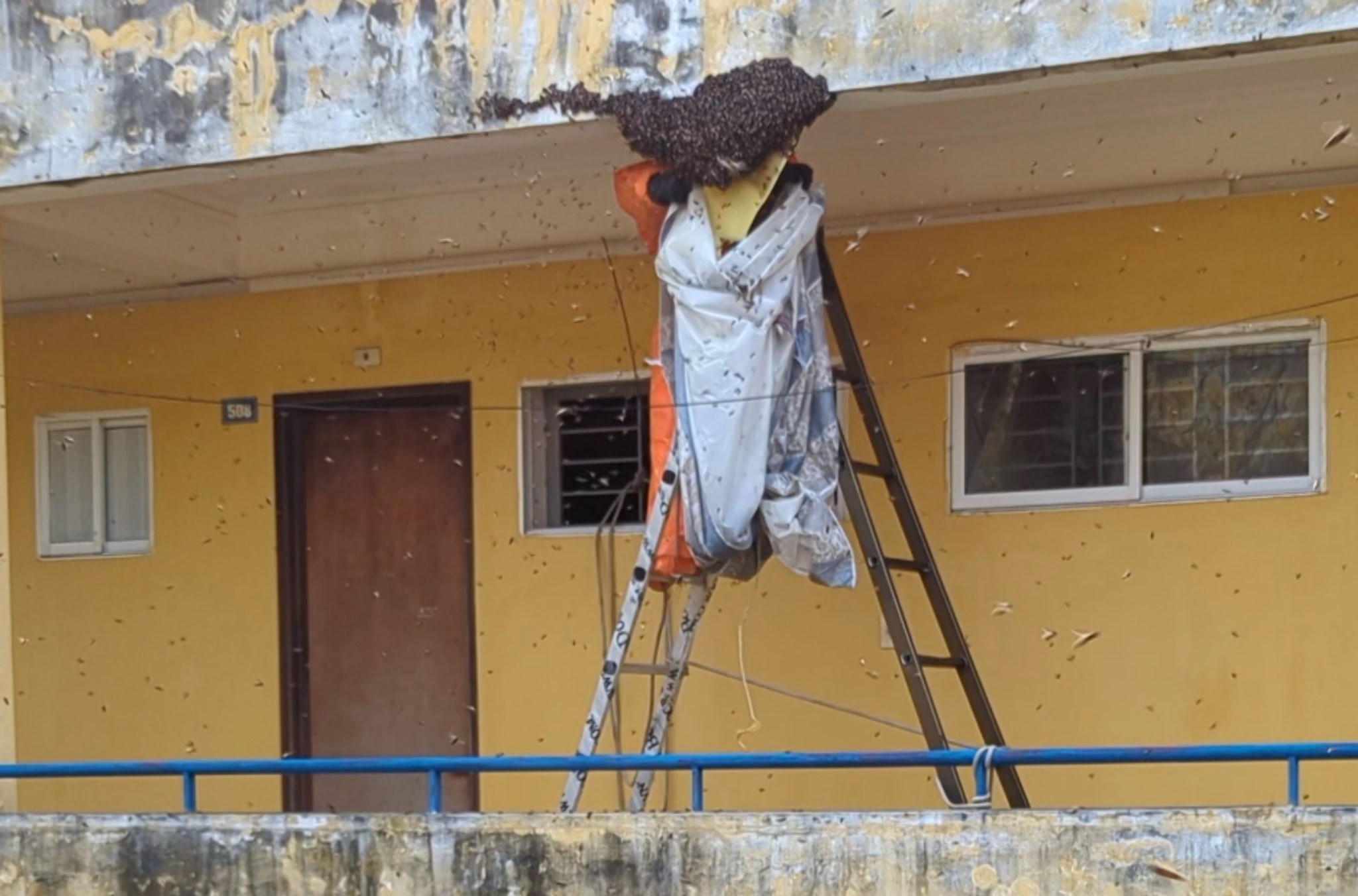 Chiều cùng ngày, Trung tâm 114 - Phòng Cảnh sát PCCC và CNCH nhận được tin báo từ người dân về việc tại Khu 5 tầng Kênh Dương, Quán Nam, quận Lê Chân, Hải Phòng có 1 tổ ong kích thước lớn đang gây nguy hiểm cho người dân và đề nghị cơ quan chức năng hỗ trợ tháo dỡ tổ ong.