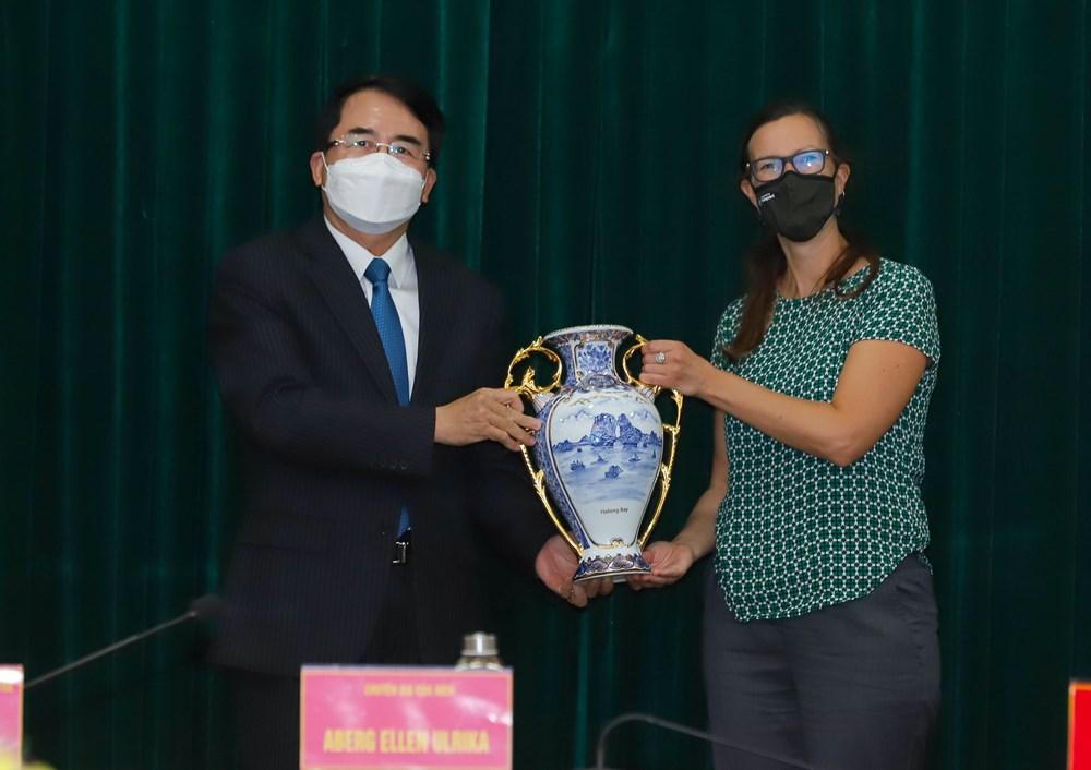 Phó Chủ tịch UBND TP Lê Khắc Nam chụp ảnh lưu niệm cùng Đoàn công tác |