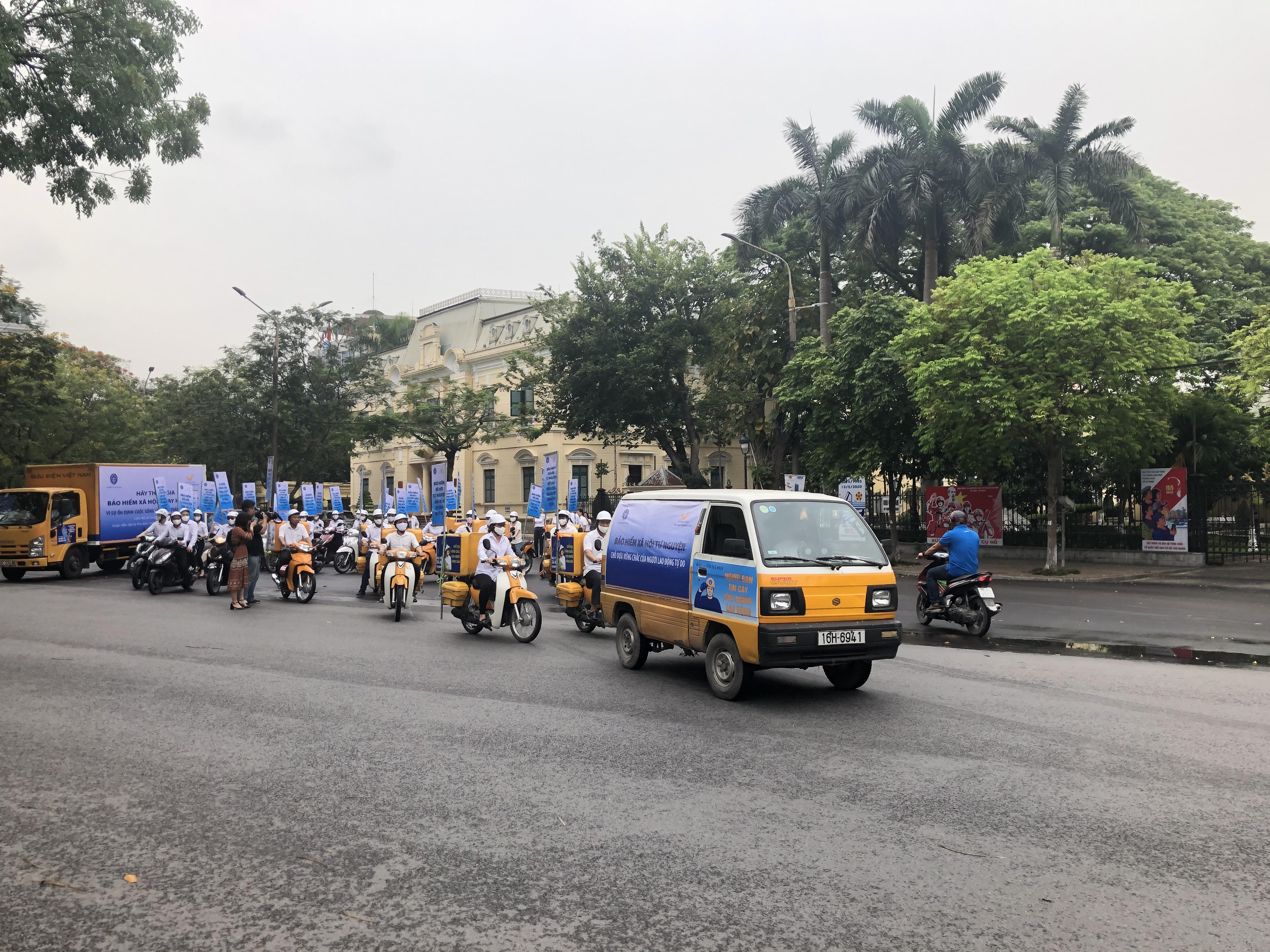 Tại lễ ra quân, BHXH TP Hải Phòng và Bưu điện TP Hải Phòng tổ chức tuyên truyền lưu động tại một số tuyến đường thuộc các quận: Hồng Bàng, Lê Chân, Ngô Quyền, Hải An.