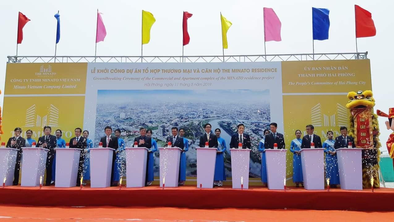 (PLVN) - Tiếp nối chuỗi sự kiện chào mừng Lễ hội Hoa Phượng Đỏ Hải Phòng 2019, ngày 11/5, UBND TP Hải Phòng phối hợp với Cty TNHH Minato Việt Nam tổ chức khởi công Dự án tổ hợp thương mại và căn hộ tại Lô B – Khu đô thị ven sông Lạch Tray, phường Vĩnh Niệm, quận Lê Chân.