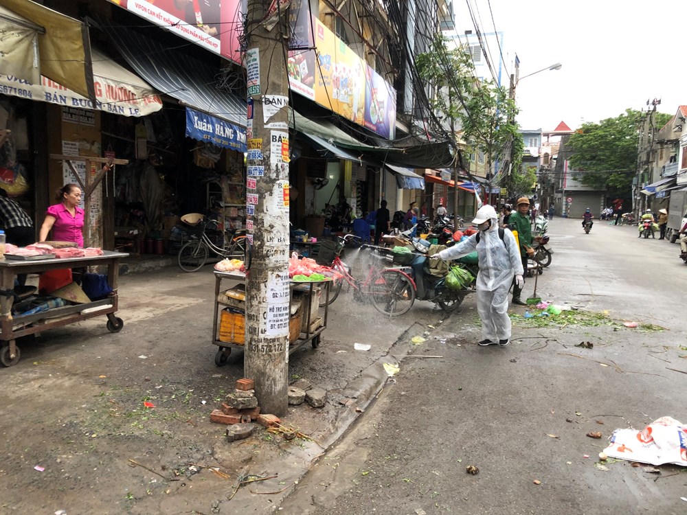 Trung tâm Y tế các quận huyện thực hiện phun khử trùng môi trường tại các tuyến đường chính trên địa bàn quận, huyên, đường ngõ, ngách, trường học, chợ, trụ sở cơ quan hành chính nhà nước trên địa bàn, khu dân cư, nơi tập trung đông người.