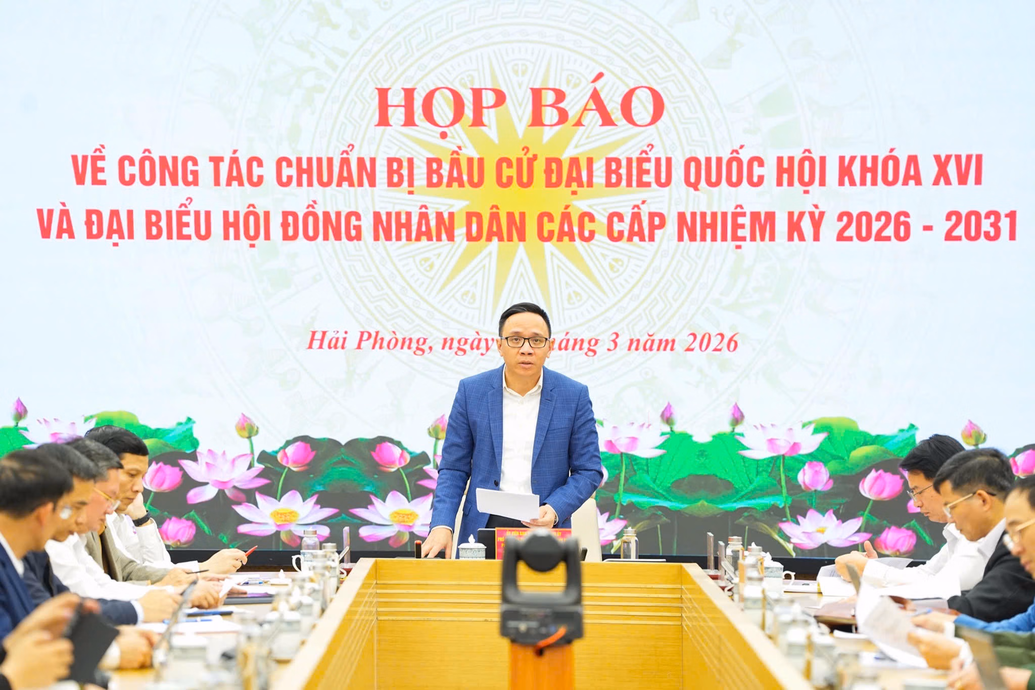 Chiều 10/3, Ủy ban bầu cử TP Hải Phòng đã tổ chức họp báo thông tin về công tác chuẩn bị bầu cử Đại biểu Quốc hội khóa XVI và Đại biểu HĐND các cấp nhiệm kỳ 2026 – 2031 trên địa bàn TP.