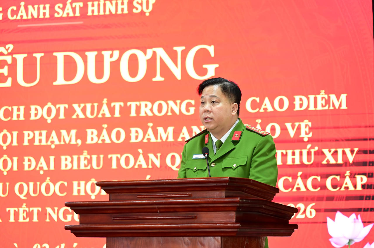 Phát biểu chỉ đạo tại lễ biểu dương, Đại tá Bùi Trung Thành - Phó Giám đốc Công an TP, Thủ trưởng Cơ quan CSĐT Công an TP ghi nhận những nỗ lực, thành tích xuất sắc của Phòng CSHS, Phòng Kỹ thuật Hình sự, Phòng An ninh mạng và phòng chống tội phạm sử dụng công nghệ cao.