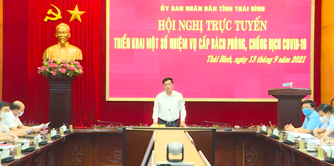 Ngày 13/9, UBND tỉnh Thái Bình họp trực tuyến với ngành Y tế, các huyện, thành phố, xã, phường, thị trấn để triển khai một số nhiệm vụ cấp bách phòng, chống dịch COVID-19.