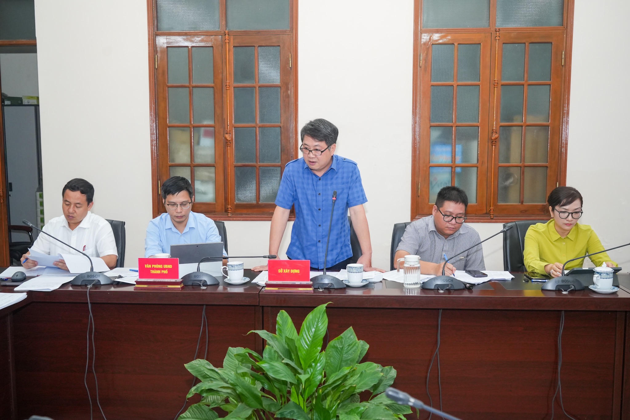 Lãnh đạo Sở Xây dựng báo cáo tại cuộc họp. |
