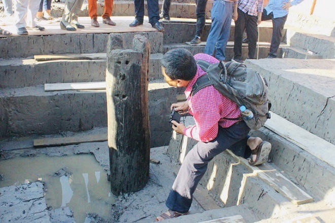Với tổng diện tích khai quật gần 400m2 đã phát lộ 37 cọc gỗ và một số cụm gỗ, mảnh gỗ rời rạc. Cọc được làm từ nhiều loại gỗ, trong đó có sến. Độ dài và kích cỡ các cọc khác nhau, dài nhất 2,87m, đường kính lớn nhất 32cm.