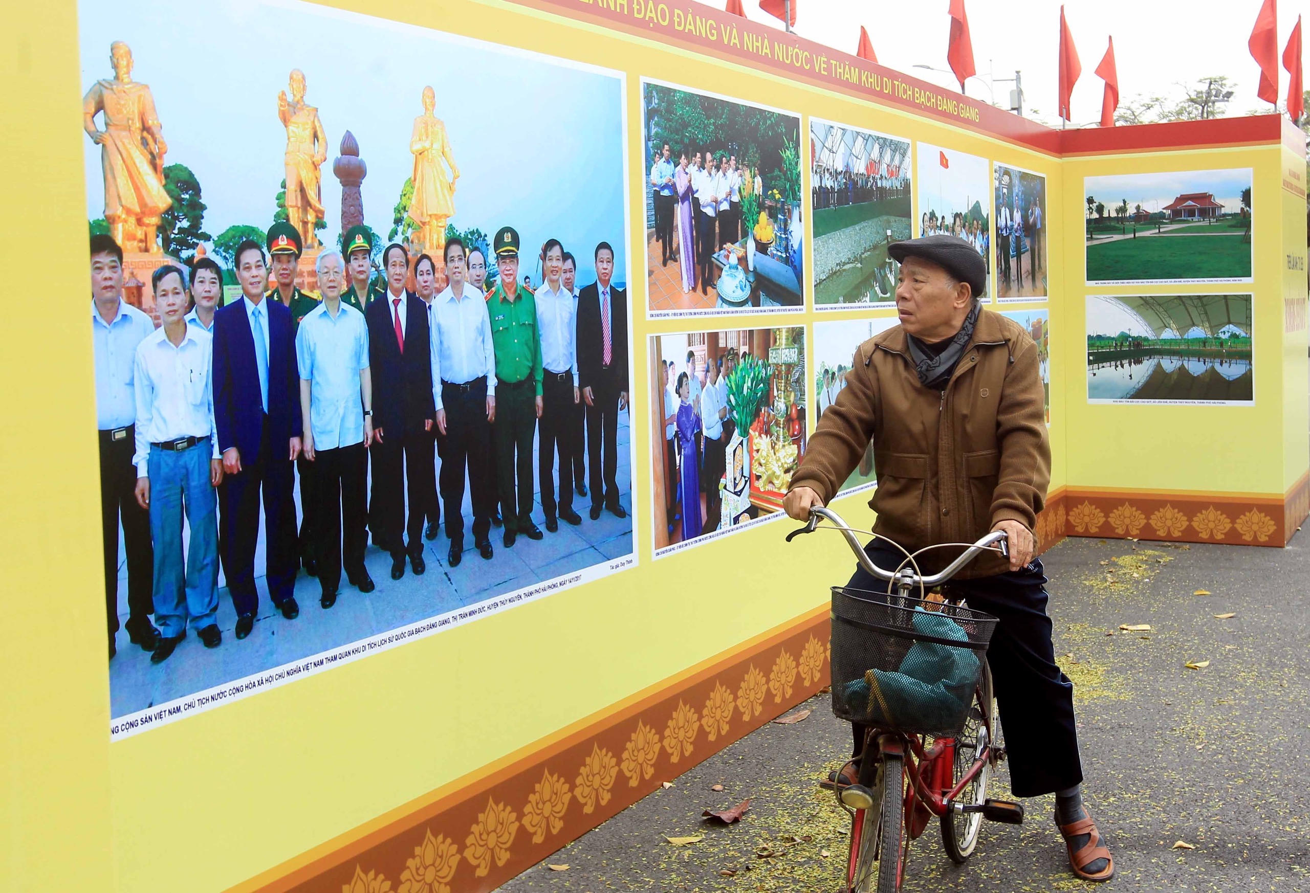 Đồng thời, triển lãm cũng giới thiệu một số hình ảnh lãnh đạo Đảng, Nhà nước và du khách tham quan Khu di tích Bạch Đằng Giang, cho thấy sự quan tâm đặc biệt của lãnh đạo Đảng, Nhà nước cùng nhân dân cả nước với vùng đất lịch sử Hải Phòng.