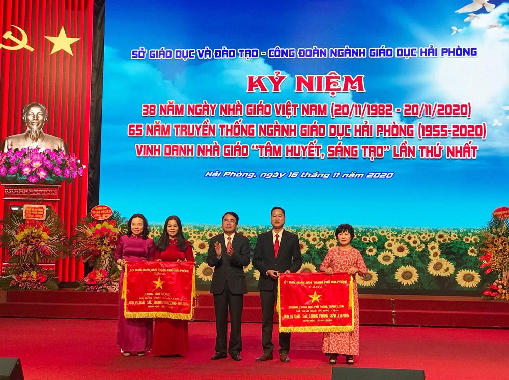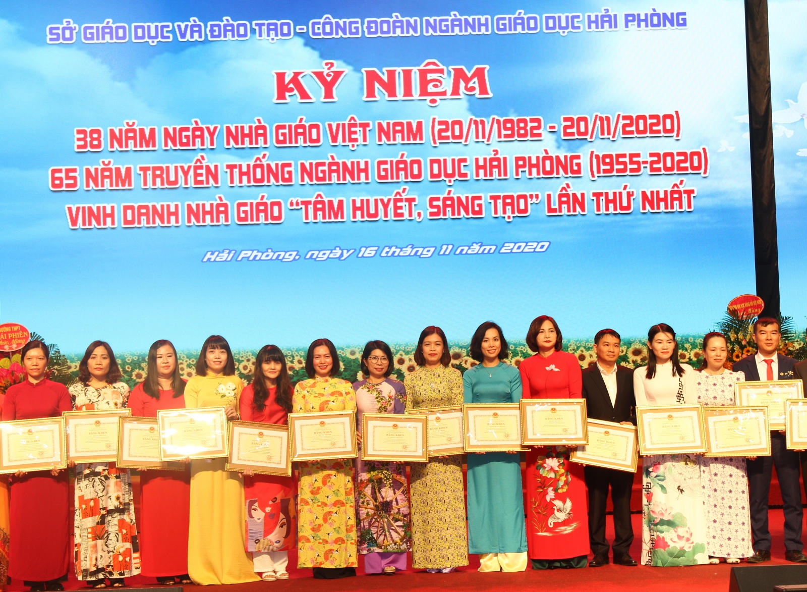 Nhân dịp này, UBND TP Hải Phòng đã trao cờ thi đua xuất sắc cho 2 đơn vị trực thuộc Sở GD&ĐT; tặng danh hiệu tiên tiến xuất sắc cho 3 tập thể; 28 tập thể, 157 cá nhân có thành tích xuất sắc trong năm học vừa qua được nhận bằng khen của Bộ GD&ĐT. 65 nhà giáo Hải Phòng tâm huyết, sáng tạo với sự nghiệp trồng người cũng được tôn vinh, khen thưởng.