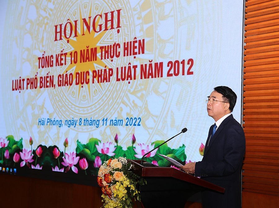 Phát biểu tại hội nghị, ông Lê Khắc Nam, Phó Chủ tịch UBND TP Hải Phòng cho biết, trong những năm qua, Thành ủy, HĐND, UBND TP luôn xác định công tác PBGDPL có vai trò quan trọng, có ý nghĩa to lớn, là nhiệm vụ của toàn hệ thống chính trị; là khâu đầu tiên của quá trình thi hành pháp luật, góp phần đưa chủ trương, chính sách của Đảng, pháp luật của Nhà nước đi vào cuộc sống, trở thành ý thức, hành động của từng cá nhân trong xã hội.
