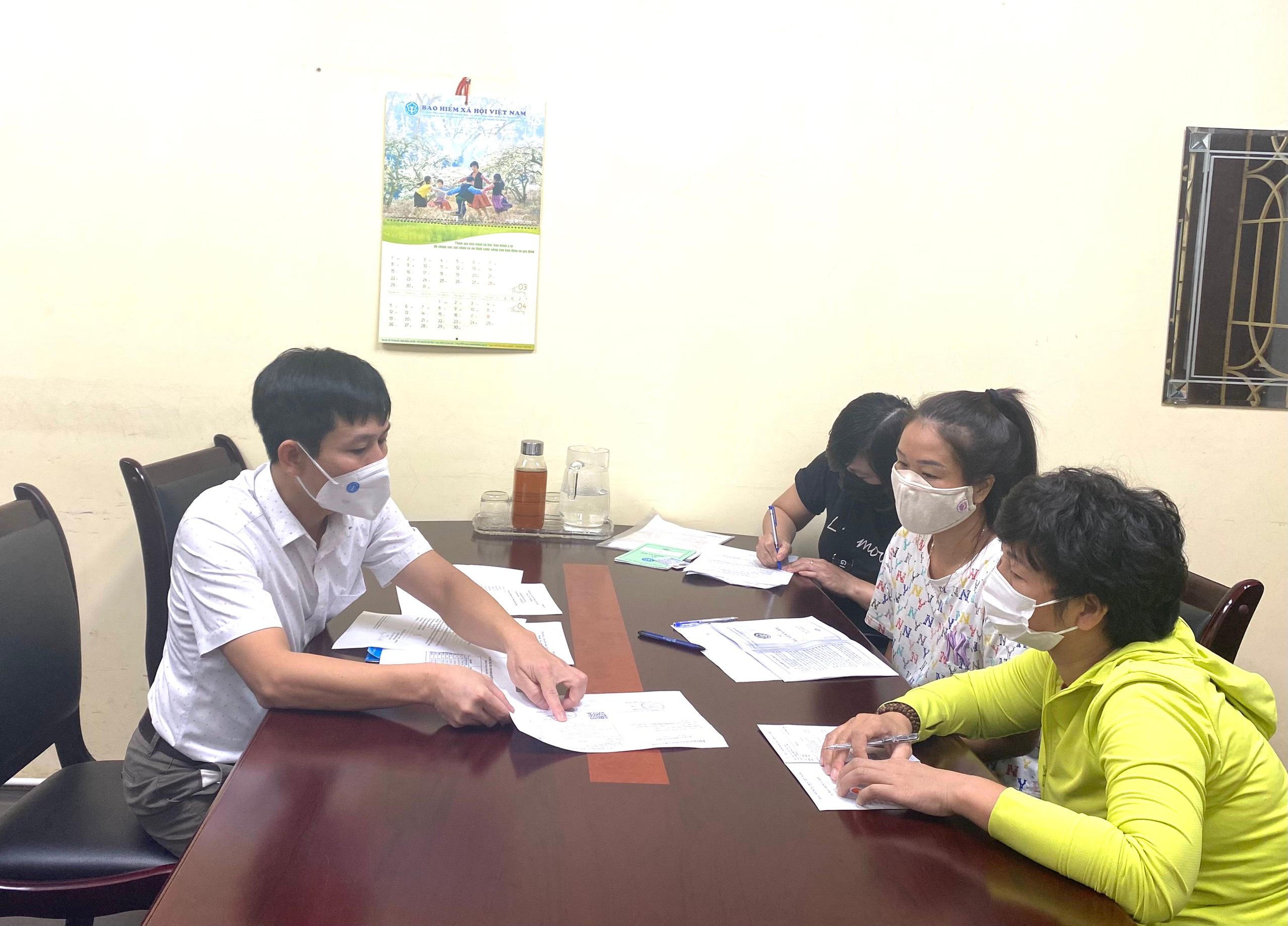 Việc hướng dẫn NLĐ hoàn thiện thủ tục để nhận hỗ trợ đảm bảo bảo quy định phòng chống Covid-19. |