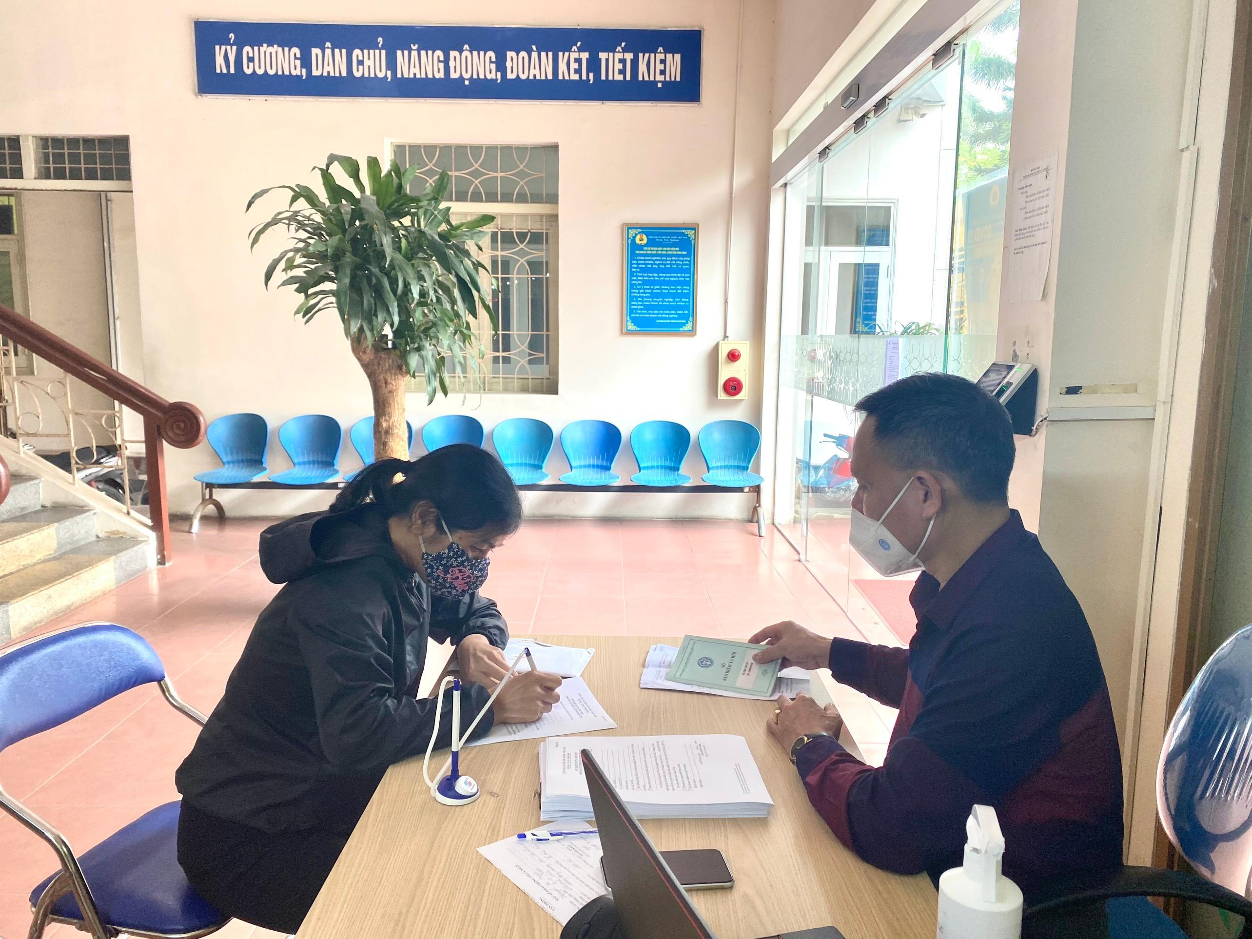 Tại bộ phận tiếp nhận và trả kết quả thủ tục hành chính, cán bộ BHXH được tăng cường để hướng dẫn NLĐ cài đặt ứng dụng VssID, đối chiếu quá trình tham gia BHTN của bản thân, nộp hồ sơ trực tuyến để giảm tải lượng NLĐ đến giao dịch trực tiếp tại các cơ quan BHXH.