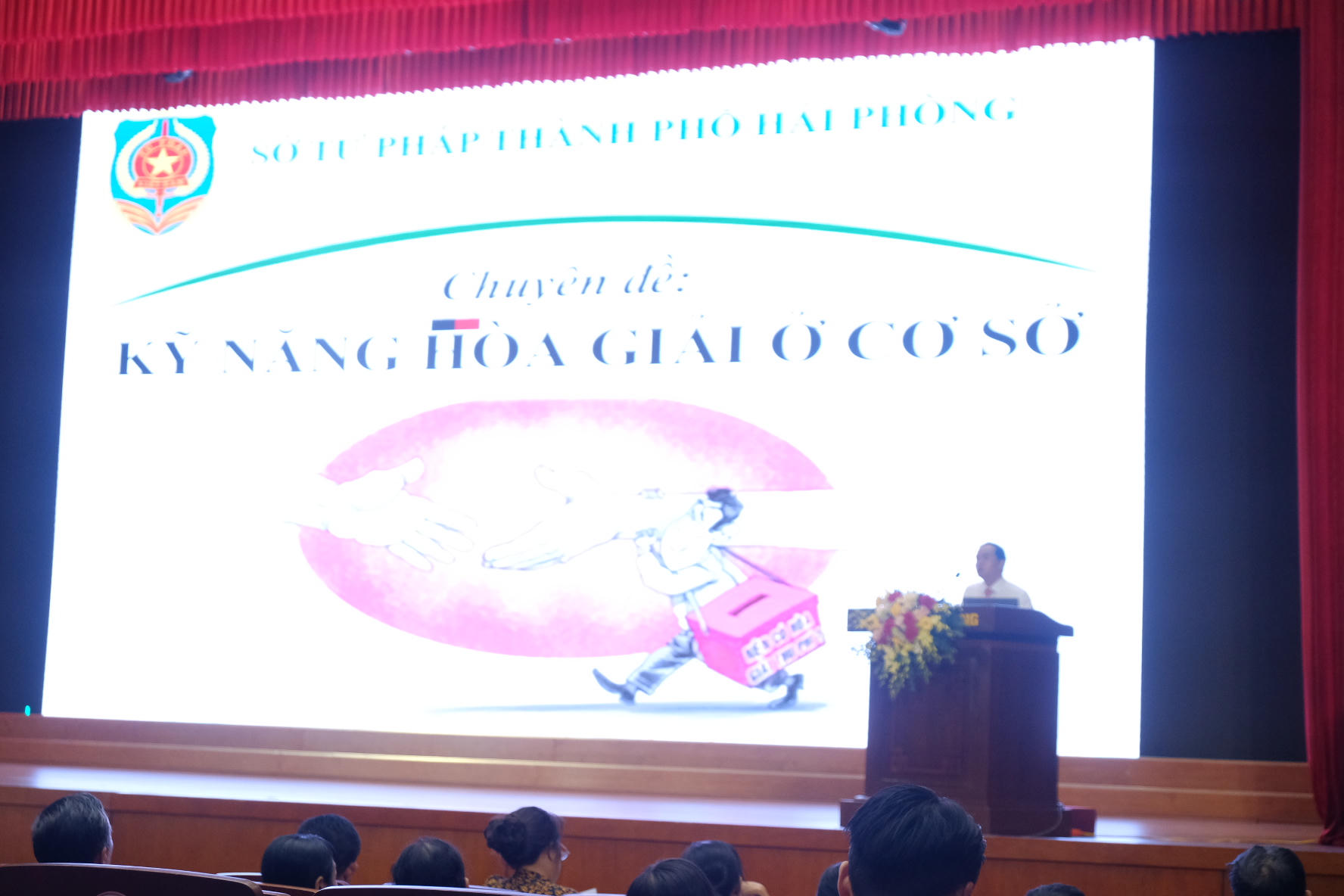 Ngoài ra, các đại biểu cũng đã nghe báo cáo viên Trần Minh Nghĩa, cán bộ Trung tâm trợ giúp pháp lý Nhà nước TP phổ biến kỹ năng hoà giải ở cơ sở. Theo đó, đối với TP Hải Phòng, sau 10 năm thi hành Luật Hoà giải cơ sở, địa phương hiện có hơn 1.900 tổ hoà giải ở cơ sở với hơn 11.000hoà giải viên và trong hơn 10 năm qua, đội ngũ hoà giải viên ở TP Hải Phòng đã giải quyết được hơn 20.000 vụ việc tranh chấp, mâu thuẫn phát sinh từ cơ sở và tỉ lệ hoà giải thành công cũng đạt gần 80%.