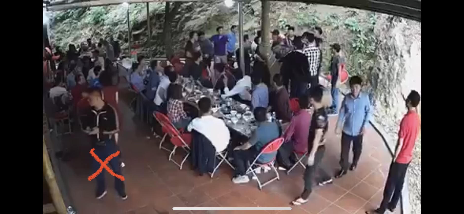 Theo hình ảnh từ camera của nhà hàng vườn Sưa ghi lại, trước khi sang bàn anh Chín mời rượu, Thêm ngồi ăn nhậu cùng một nhóm dân “anh chị” ở phía ngoài, khi Thêm sang bàn anh Chín khà khịa kiếm cớ đánh anh Chín thì ở vòng ngoài xuất hiện là H. “Tồ” và C “Cận” chỉ đạo, vẫy tay ra hiệu để những “đàn em” khác cầm tuýp sắt, ghế lao vào tấn công anh Chín. Sau khi đánh anh Chín, những đối tượng này lên ô tô đợi sẵn ở bên ngoài cùng nhau rút lui.