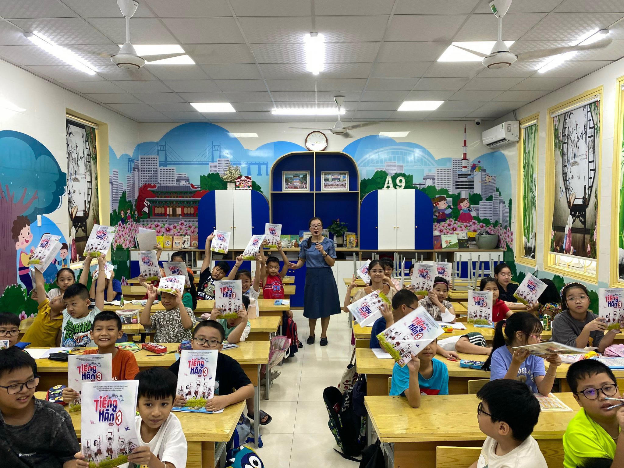 Học sinh trường Tiểu học Nguyễn Văn Tố (quận Lê Chân) hào hứng với ngoại ngữ tiếng Hàn Quốc. |