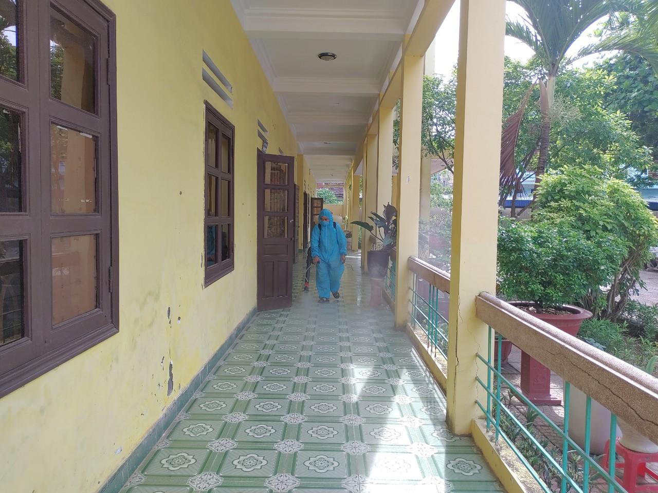 Tiến hành phun khử khuẩn tại điểm thi THPT Vĩnh Bảo đợt 1 kỳ thi tốt nghiệp THPT năm 2021. |