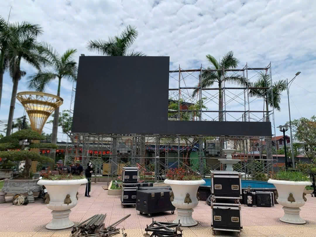 Hệ thống màn hình LED ngoài trời cỡ lớn cùng hệ thống âm thanh, ánh sáng hiện đại đang được lắp đặt |