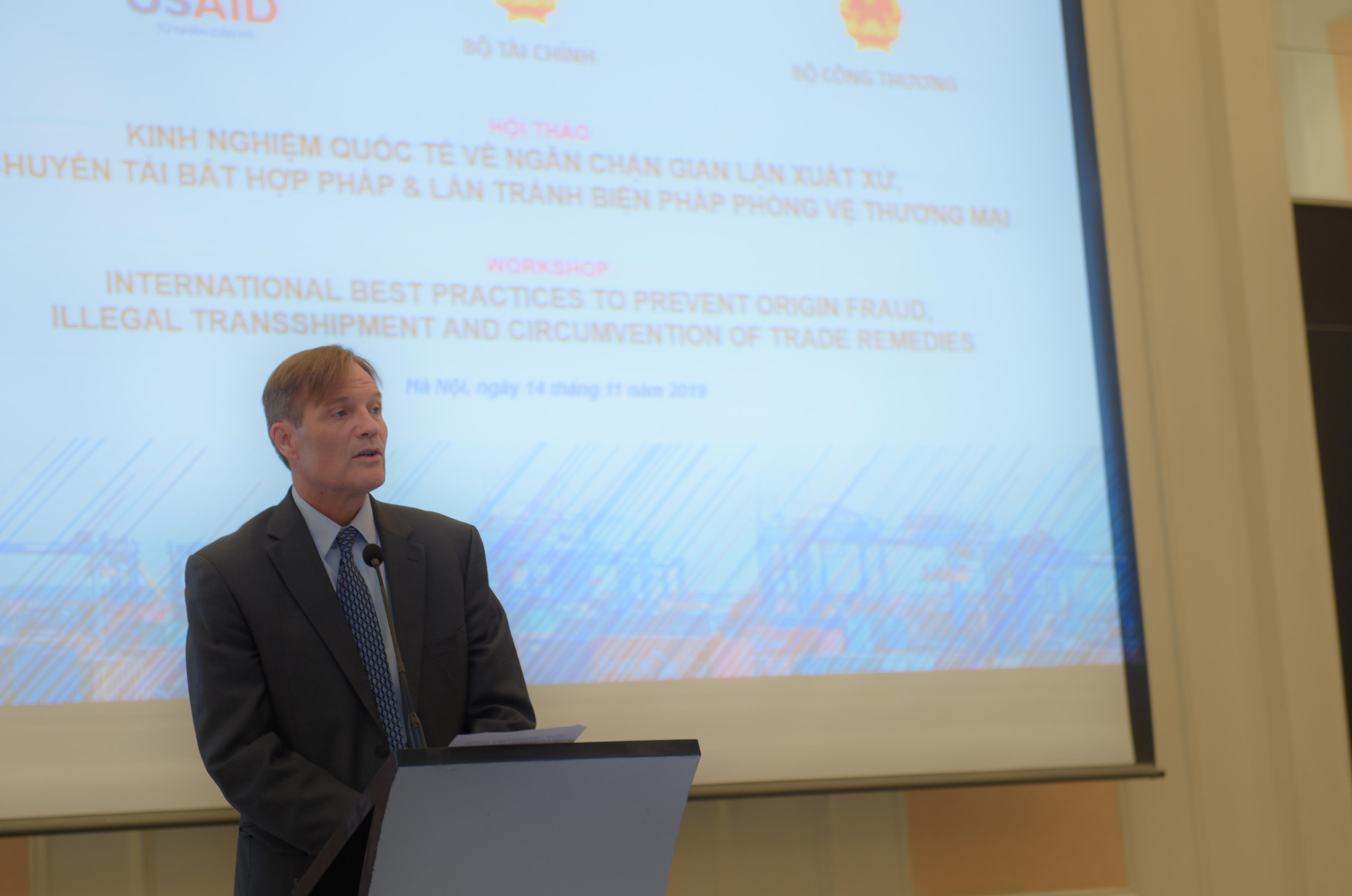 (PLVN) - Hôm nay (14/11), “Hội thảo chia sẻ kinh nghiệm quốc tế về chống gian lận xuất xứ, chuyển tải bất hợp pháp và lẩn tránh các biện pháp phòng vệ thương mại” đã diễn ra tại Hà Nội. Hội thảo do Bộ Tài chính (Tổng cục Hải quan), Bộ Công Thương và USAID Việt Nam phối hợp tổ chức.
