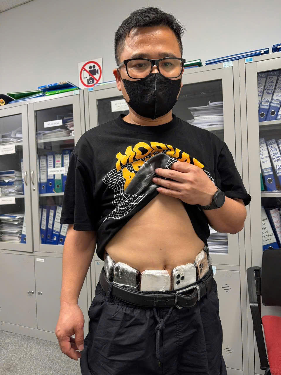 Trước đó, ngày 10/4/2025, Hải quan Cửa khẩu sân bay quốc tế Nội Bài chủ trì, bắt giữ hành khách Mạc Tuấn Anh đi trên chuyến bay mang số hiệu 7C2201 từ Incheon - Hàn Quốc đến sân bay quốc tế Nội Bài. Do hành khách Mạc Tuấn Anh có tần suất đi lại nhiều lần trong thời gian ngắn, nghi ngờ có rủi ro cao; đồng thời, qua soi chiếu hành lý, kiểm tra bằng máy dò kim loại, cán bộ Hải quan đã phát hiện hành khách này mang theo 64 chiếc điện thoại được quấn quanh người bằng băng dính nhằm qua mặt cơ quan chức năng.