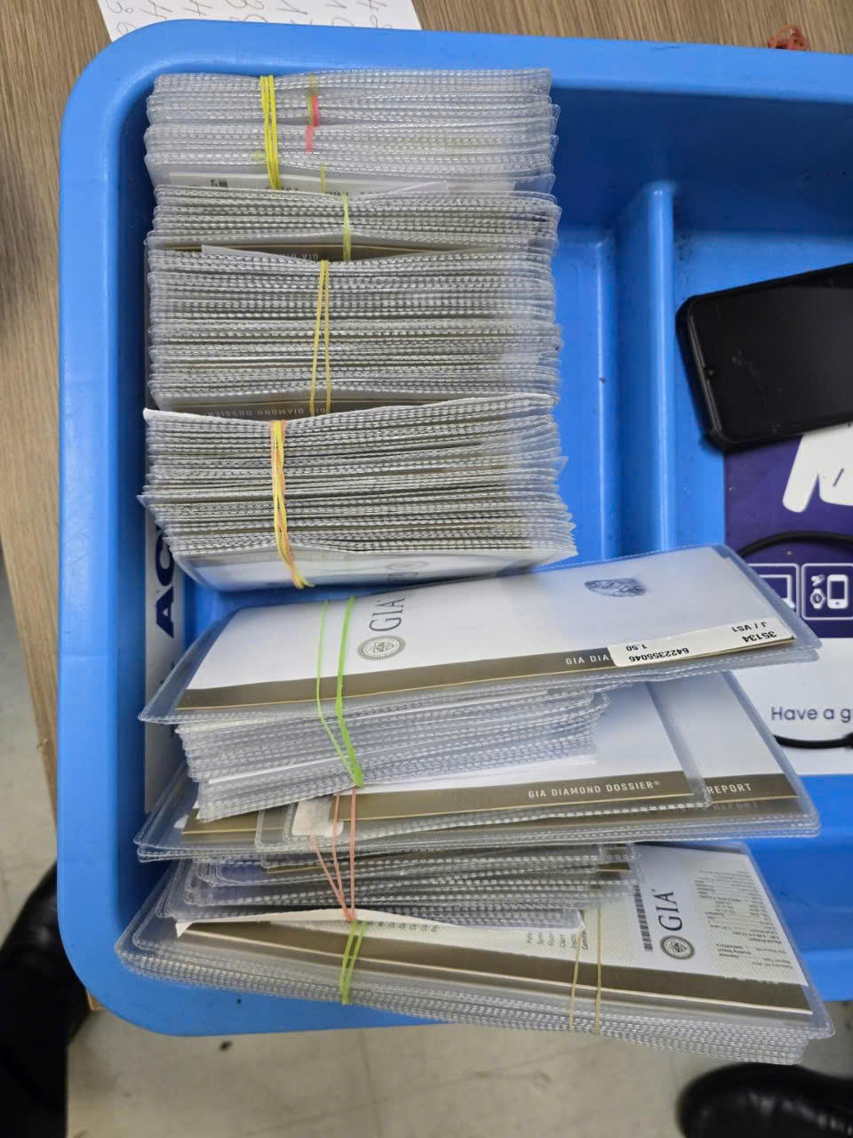 Lực lượng chức năng đã kiểm tra và phát hiện trong hành lý của ông P.S.H có nhiều tập giấy nhỏ có in chữ IGI và 10 gói nylon chứa 716 viên kim cương được cất trong ví để lẫn cùng quần áo tư trang.