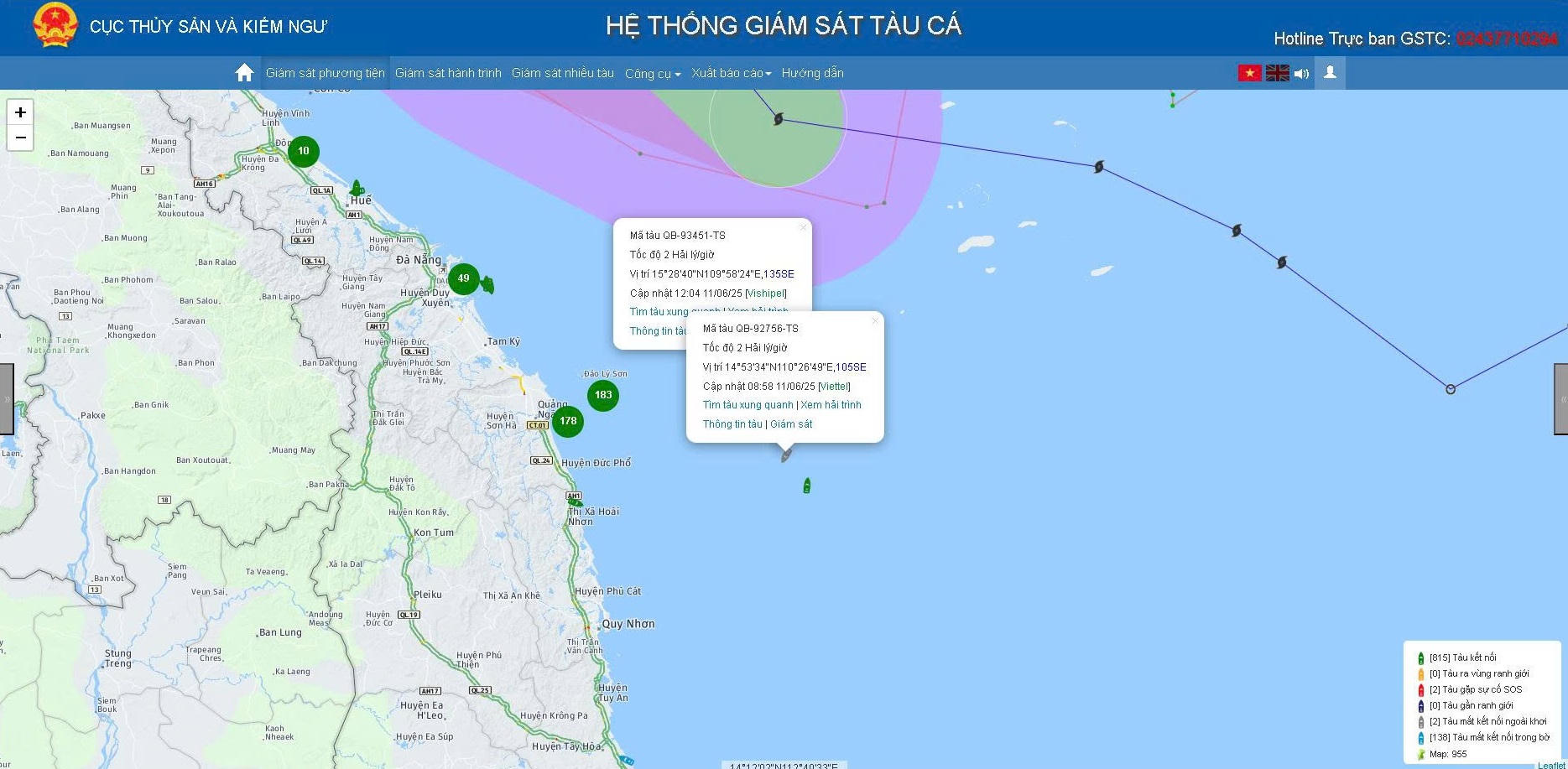 Tiếp đó, khoảng 12h cùng ngày, tàu cá mang số hiệu QB-93451-TS (do ông Nguyễn Hữu Đức làm chủ tàu) cũng bị chìm khi đang thực hiện hành trình tại tọa độ 15028’N-109058’E, thuộc vùng biển Quảng Ngãi.