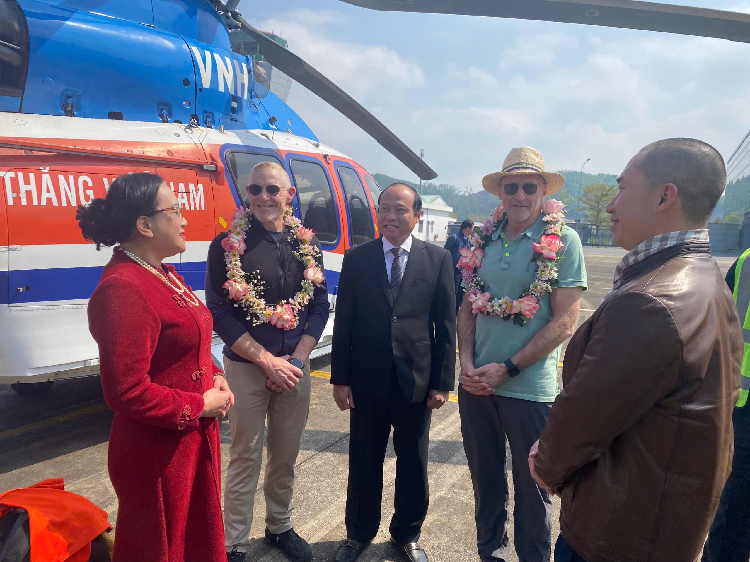 (PLVN) - Ngày 11/2, Hai triệu phú người Mỹ đi trực thăng từ sân bay Gia Lâm (Hà Nội) đến sân bay Vân Đồn (Quảng Ninh) bắt đầu hành trình tham quan, trải nghiệm 3 ngày, 2 đêm trên vịnh Hạ Long và vịnh Bái Tử Long