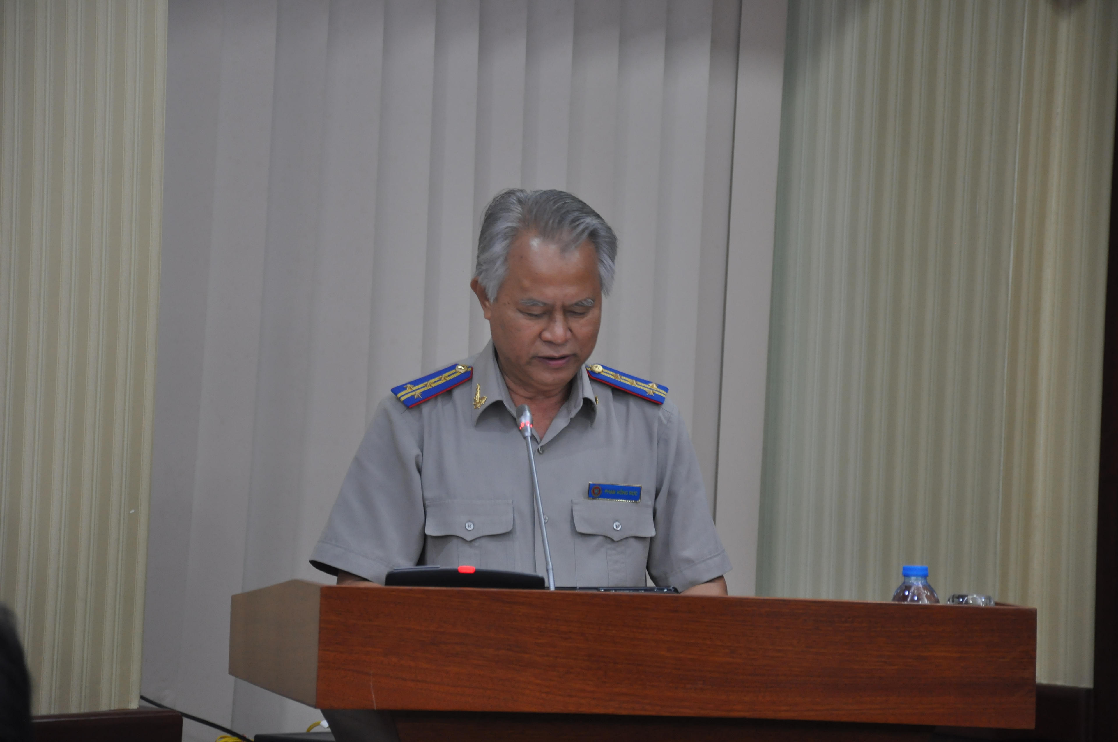 | Ông Phạm Hồng Đức, Cục trưởng Cục thi hành án dân sự tỉnh Bà Rịa – Vũng Tàu báo cáo tại buổi làm việc |
