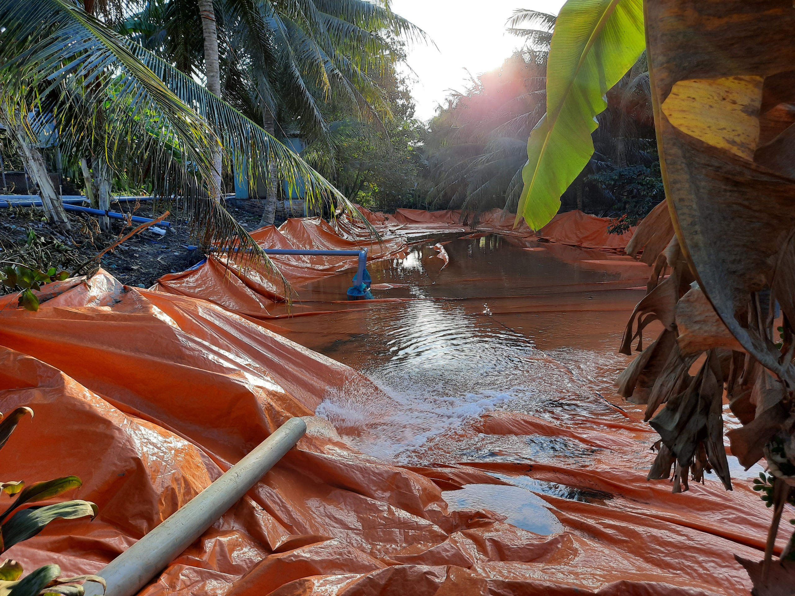 Bên cạnh đó, có hơn 610 ha vườn chuyên canh được cấp chứng nhận Global GAP hoặc Viet GAP đều đang khát khô, héo úa, cho năng suất thấp và trái nhỏ. Trung bình một sà lan nhỏ chở khoảng 300 – 600 m3 nước, được vận chuyển trực tiếp bơm lên các hồ dã chiến làm bằng bạt để chủ vườn bơm sâu vào trong vườn.