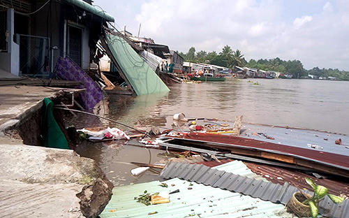 Hàng chục căn nhà ở Cần Thơ bị sụp xuống sông