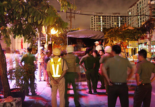Gần 80ngườibị đưa về trụ sở để kiểm tra. Ảnh:C.A |