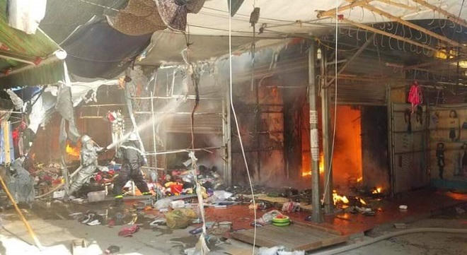 Theo thông tin ban đầu, khoảng 7h30’ ngày 23/9, ngọn lửa bùng lên từ một gian hàng tạp hóa. Lửa sau đó nhanh chóng lan sang khoảng 10 gian hàng khác.