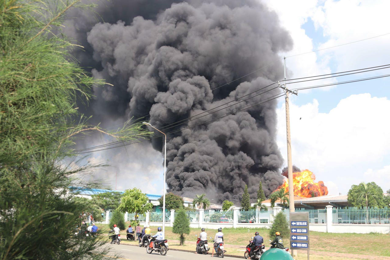 Hàng chục tiếng nổ lớn trong đám cháy tại khu công nghiệp ở TP Biên Hòa