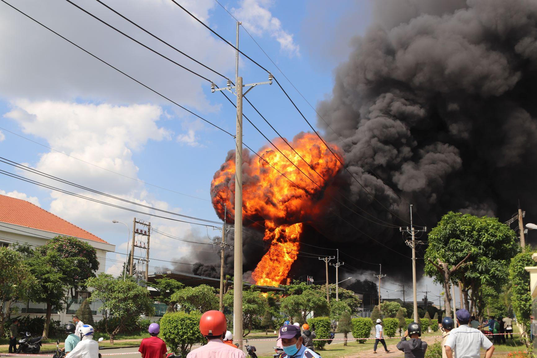 Có ít nhất 20 tiếng nổ lớn xảy ra kể từ khi vụ cháy bắt đầu, đến khoảng 15h30, đám cháy cơ bản đã được khống chế.