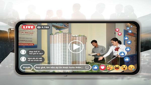 Tận dụng tính năng livestream của nhiều ứng dụng, nền tảng mạng xã hội sẽ gia tăng sức thuyết phục, giúp khách hàng tiềm năng quan sát bất động sản một cách sinh động, xác thực nhất có thể. Phương thức này còn giúp khách hàng ở xa, không tiện di chuyển có thêm kênh tiếp cận dự án. Nếu làm một cách chuyên nghiệp, có ê - kíp hỗ trợ với các thiết bị chuyên dụng, cùng với việc người thuyết trình có kiến thức và kỹ năng giới thiệu tốt thì livestream sẽ là “vũ khí” rất lợi hại.