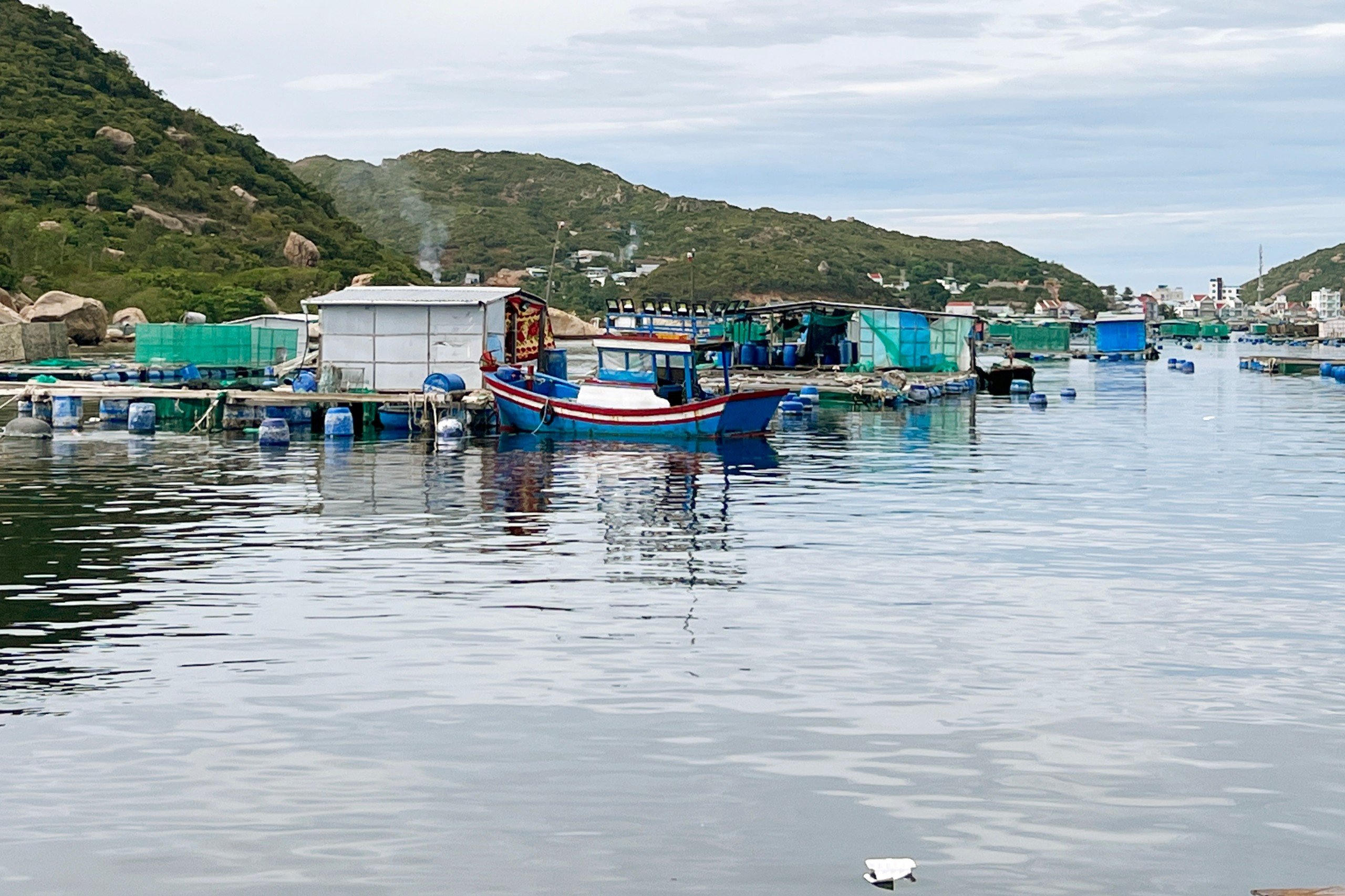Lồng nuôi tôm hùm của người dân trên vịnh Cam Ranh, TP Cam Ranh. |