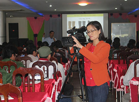 | Dù bị thông báo chấm dứt hợp đồng nhưng những nữ phóng viên Đài TT-TH Quỳ Hợp vẫn đi làm "giúp" đài. |