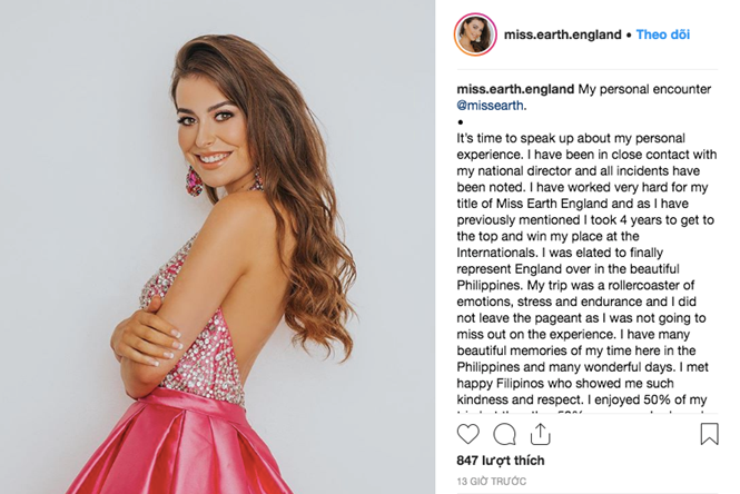 | Đại diện của Guam là Emma Sheedy chia sẻ trên trang cá nhân với thái độ bức xúc vì hành động của một nhà tài trợ |