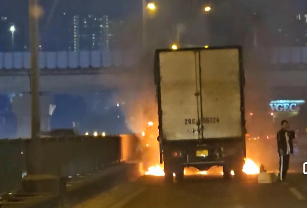 Xe tải đột ngột bốc cháy ngùn ngụt trên Vành đai 3