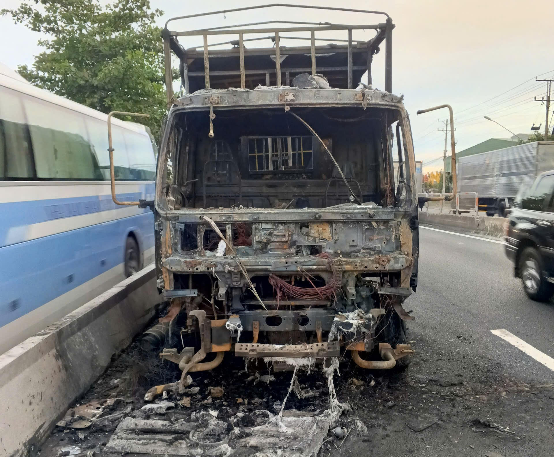 Dù không có thiệt hại về người, nhưng chiếc xe đầu kéo đã bị lửa thiêu rụi.