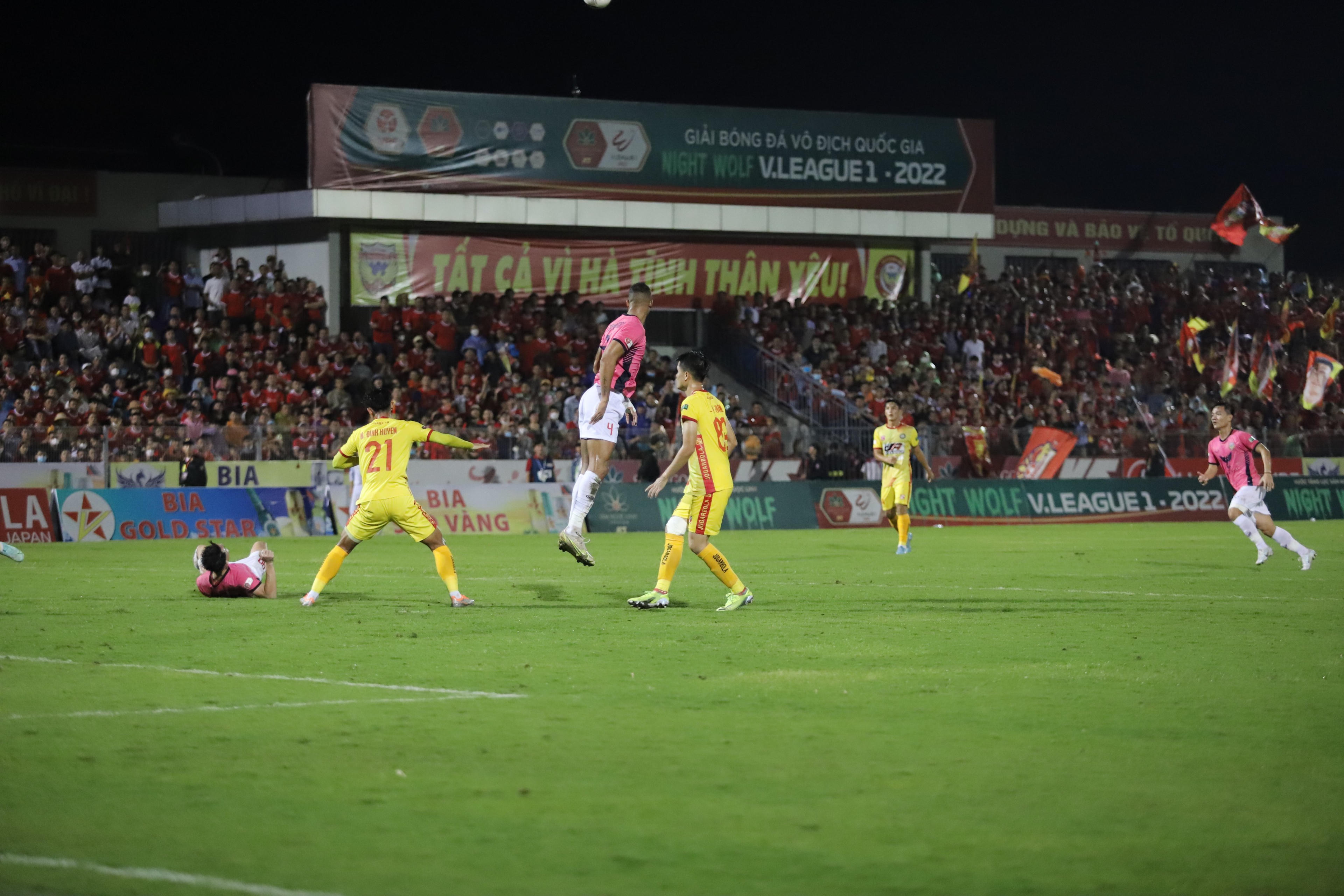 Chiều tối 19/11, trận đấu giữa CLB Hồng Lĩnh Hà Tĩnh và Đông Á Thanh Hóa ở vòng 26 V.League 2022 (vòng đấu cuối mùa giải 2022) diễn ra trên sân Hà Tĩnh. Để tiếp sức cho đội chủ nhà trong trận cầu quan trọng, sân vận động Hà Tĩnh đã đón khoảng 10.000 cổ động viên.