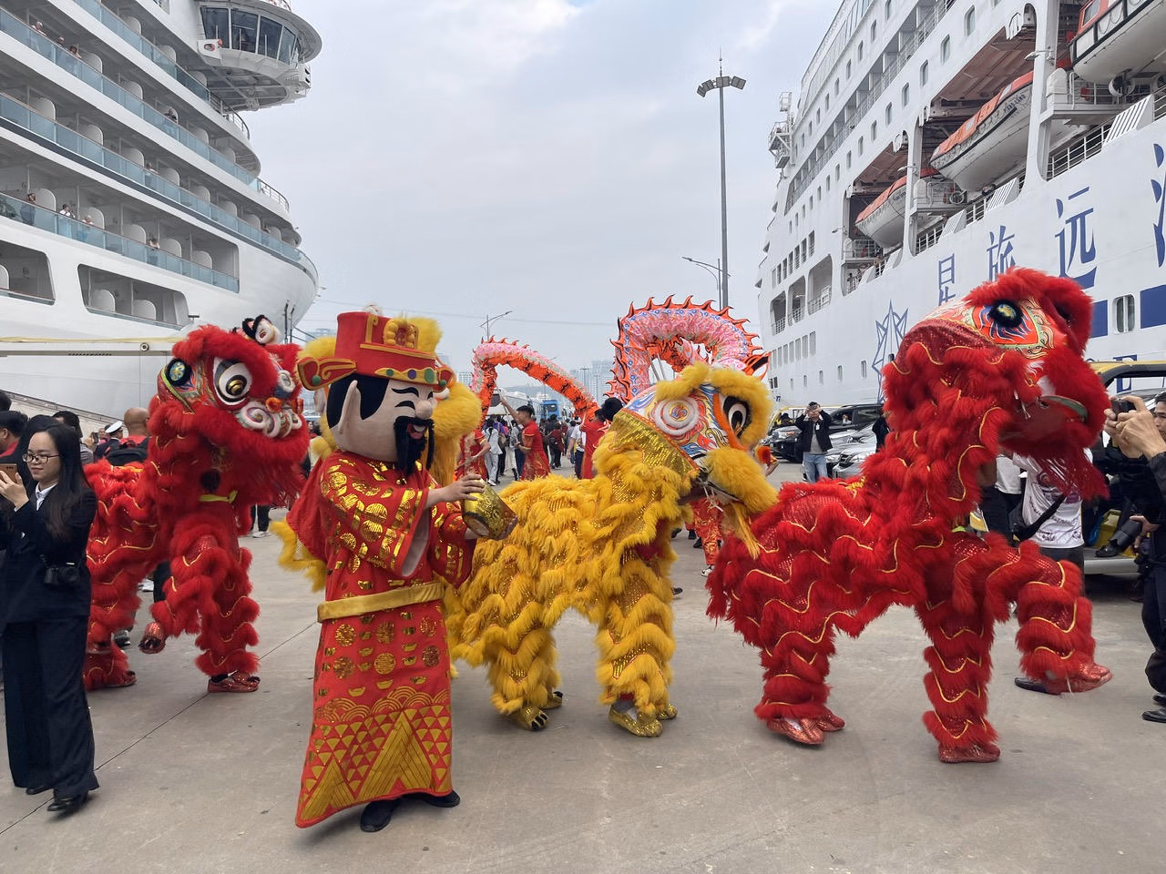 Ngay từ sáng sớm, Cảng tàu khách quốc tế Hạ Long được trang hoàng rực rỡ, nhuộm thắm trong sắc đỏ của cờ, hoa. Đón du khách với các nghi lễ tết truyền thống như trống hội, múa lân, tặng hoa, lì xì… diễn ra trang trọng đã để lại cho du khách nhiều ấn tượng khó quên về điểm đến thân thiện, hiếu khách.