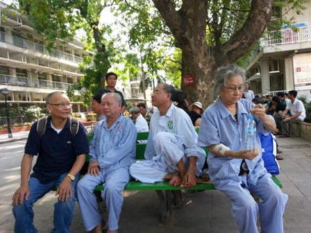Ghi nhận tại các bệnh viện Bạch Mai, bệnh viện K, viện Nhi, viện Phụ Sản Trung Ương…các khoa khám bệnh, khoa cấp cứu đều quá tải. Dưới cái nắng oi bức, không khí ngột ngạt, hàng ngàn người dân chen chúc, vạ vật ở hành lang, gốc cây, ghế đá trong các bệnh viện.