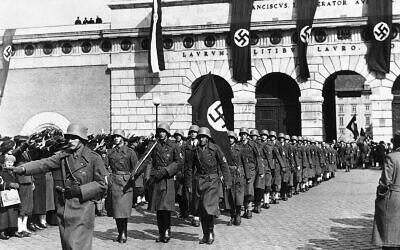 Quân đội Đức diễu hành vào Quảng trường Anh hùng ở Vienna ngày 14/3/1938. |