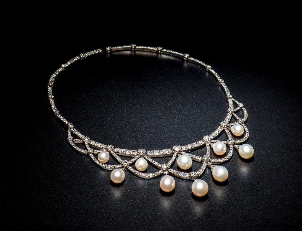 Một chiếc vòng cổ bằng ngọc trai và kim cương thuộc bộ sưu tập của gia tộc Rothschild. |