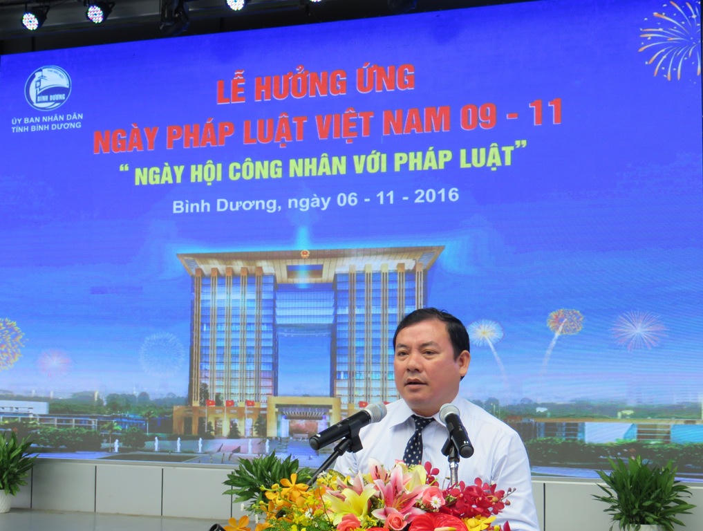 Trong bài phát biểu khai mạc ngày hội, ông Đặng Minh Hưng - Phó Chủ tịch UBND tỉnh Bình Dương trong cho biết, tỉnh Bình Dương hưởng ứng “Ngày pháp luật” với nhiều hoạt động thiết thực mà điểm nhấn là “Ngày hội Công nhân với Pháp luật”. Ngày hội nhằm tôn vinh, đề cao Hiến pháp, pháp luật trong nhà nước pháp quyền; giáo dục ý thức thượng tôn pháp luật cho mọi người trong xã hội để các quy định của pháp luật được tôn trọng, bảo vệ và đảm bảo thực hiện. Đồng thời nâng cao nhận thức của người lao động và nhân dân về vị trí của Hiếp pháp, pháp luật trong cuộc sống, góp phần giữ vững ổn định trật tự xã hội và phát triển kinh tế...
