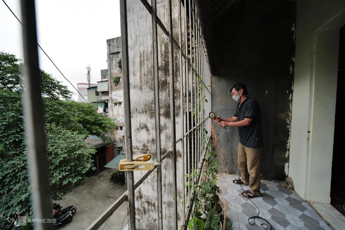 Sáng 27/4, ông Đỗ Duy Vạn, Bí thư chi bộ kiêm trưởng ban công tác mặt trận khu dân cư số 11 phường Thanh Xuân Bắc, đưa thợ sắt đến mở lối thoát hiểm cho căn hộ trên tầng 3, nhà G1, số 27 Khuất Duy Tiến.