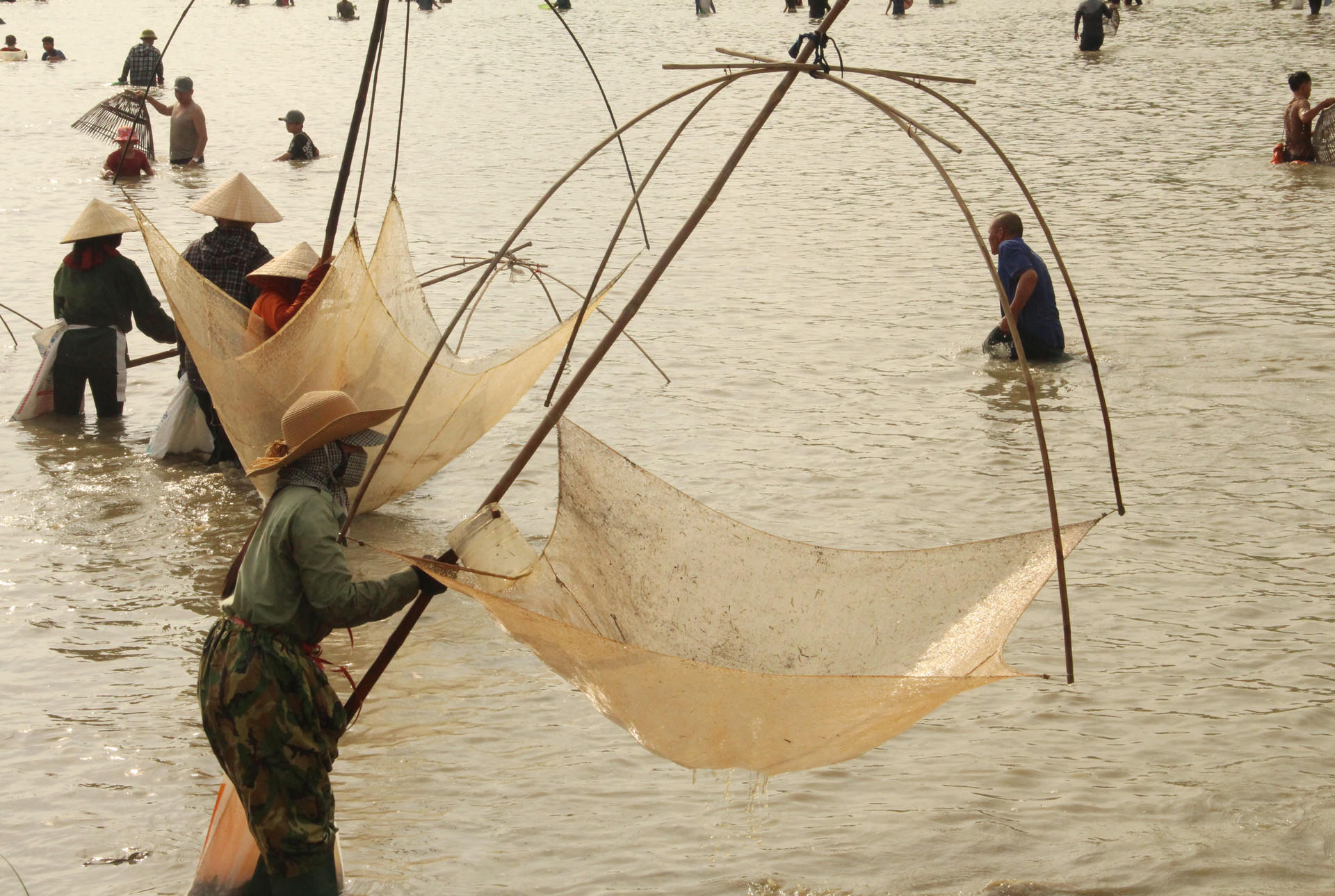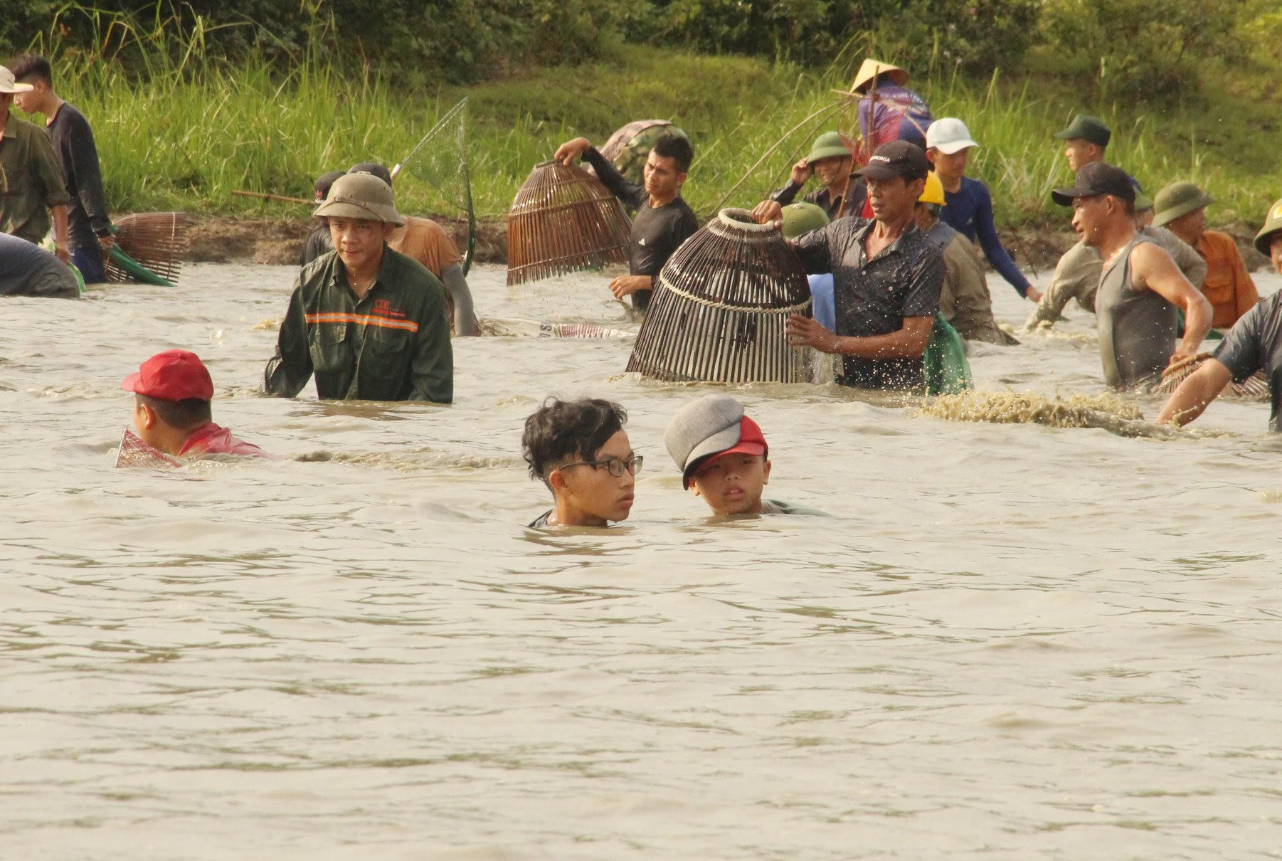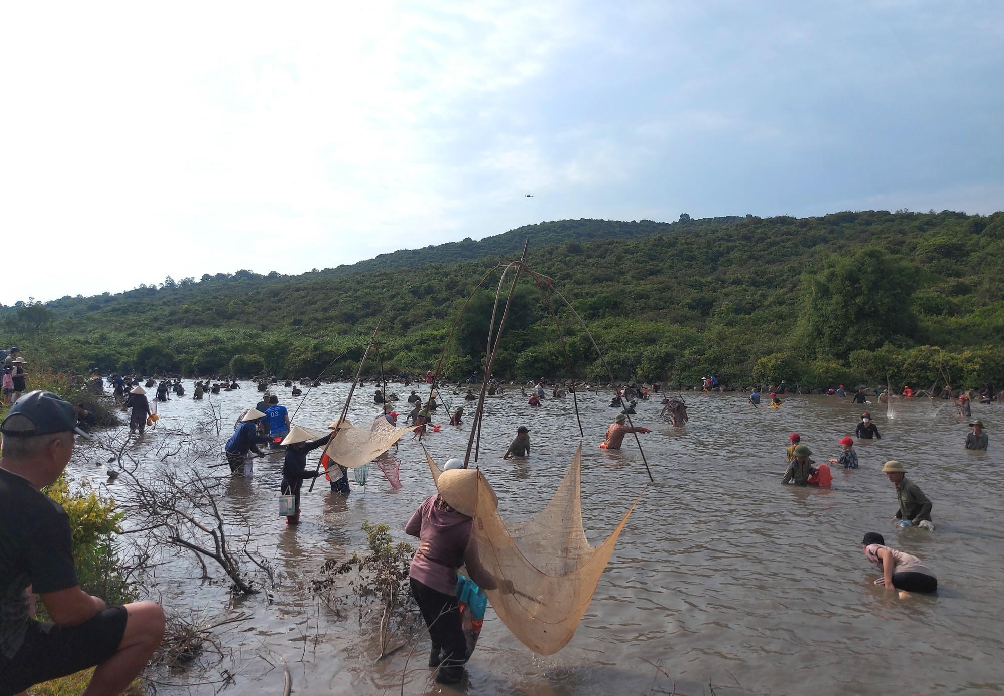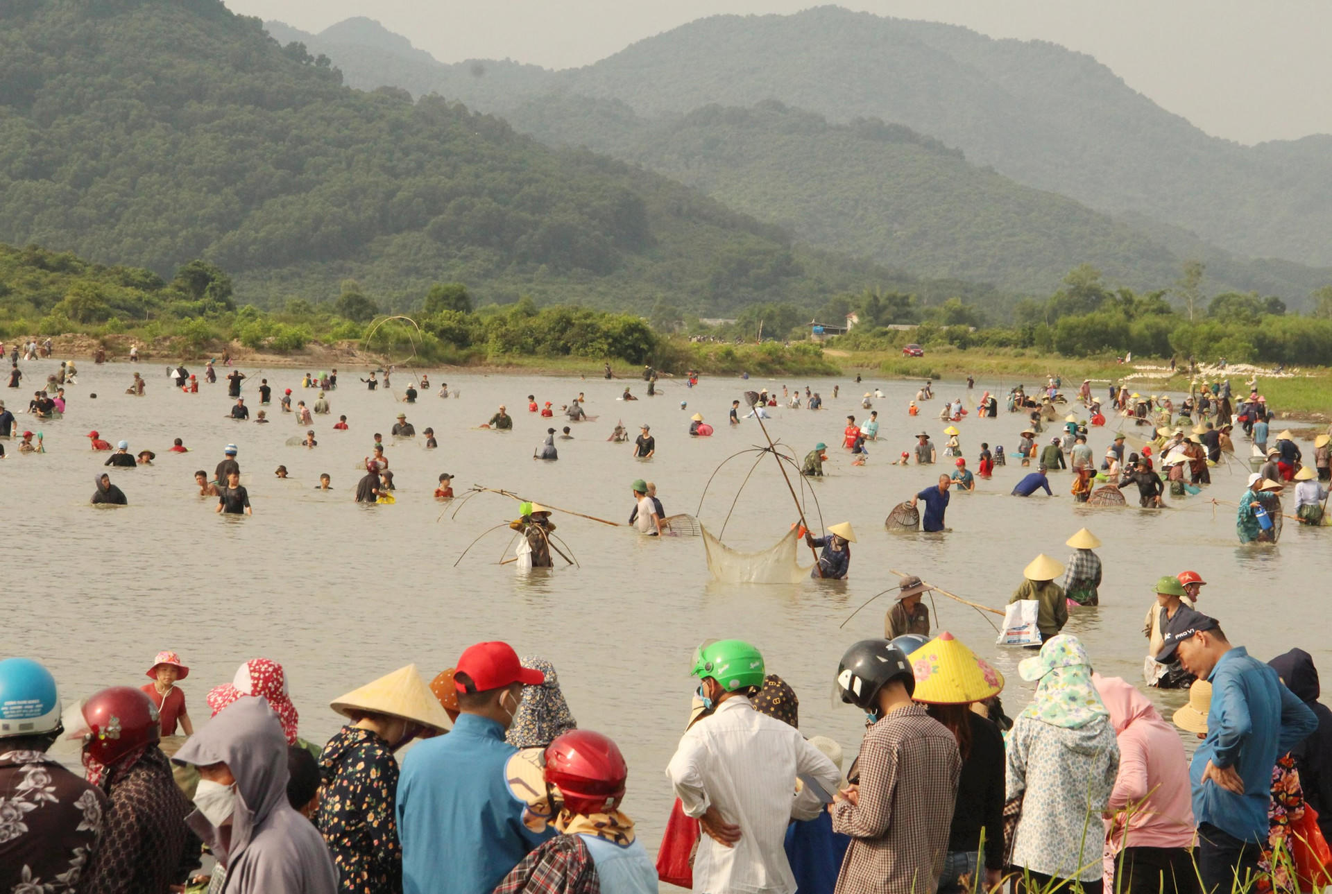 Từ sáng sớm, hàng ngàn người dân khắp các địa phương ở tỉnh Hà Tĩnh và tỉnh Nghệ An đã nô nức tập trung về khu vực đầm Vực Rào tham dự lễ hội bắt cá cầu may.