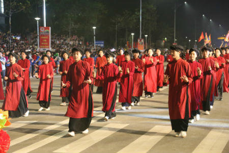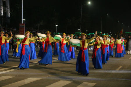 Phần trình diễn và diễu hành đường phố có sự tham gia của hơn 1.700 diễn viên, nghệ nhân văn hóa dân gian đến từ các địa phương trên địa bàn tỉnh.