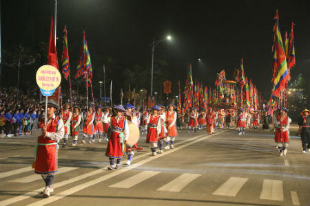 Các đội rước vừa diễu hành dọc theo đường Trần Phú đoạn qua Công viên Văn Lang vừa trình diễn sinh động những tích, các trò dân gian truyền thống. Kết thúc màn diễu hành của các đội rước kiệu, 8 xe mô hình và các đội múa lân tiếp tục qua các tuyến phố.