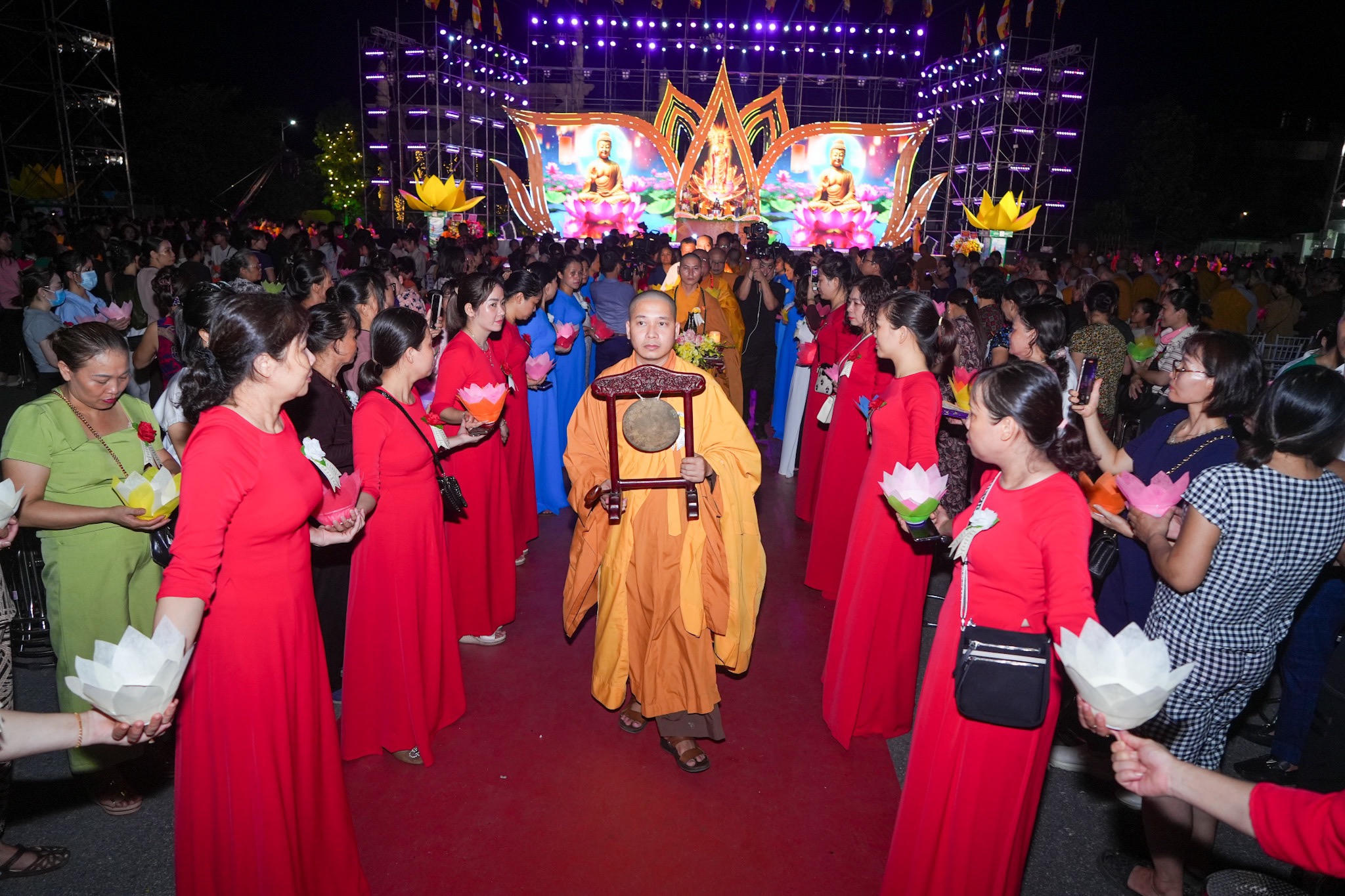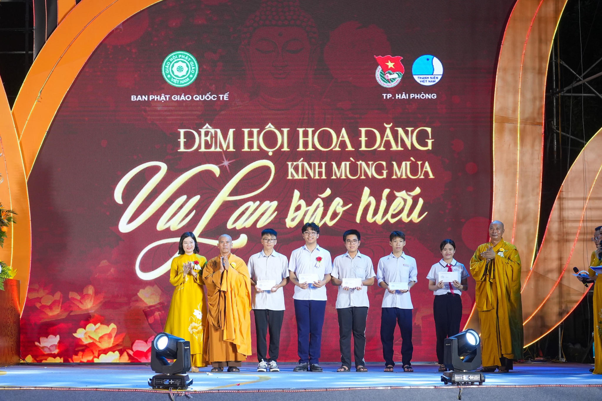 Trong khuôn khổ đêm hội, Ban Phật giáo Quốc tế, Giáo hội Phật giáo Việt Nam TP và Hội LHTN Việt Nam TP trao 10 nhà Nhân Ái, nhà Khăn quàng đỏ (ước tính tổng trị giá 1 tỷ đồng) cho các đối tượng là các em thanh thiếu nhi, đoàn viên, hội viên thanh niên; gia đình chính sách, người có công; hội viên cựu thanh niên xung phong, nạn nhân chất độc da cam và người có hoàn cảnh đặc biệt khó khăn trên địa bàn các phường của quận Kiến An.